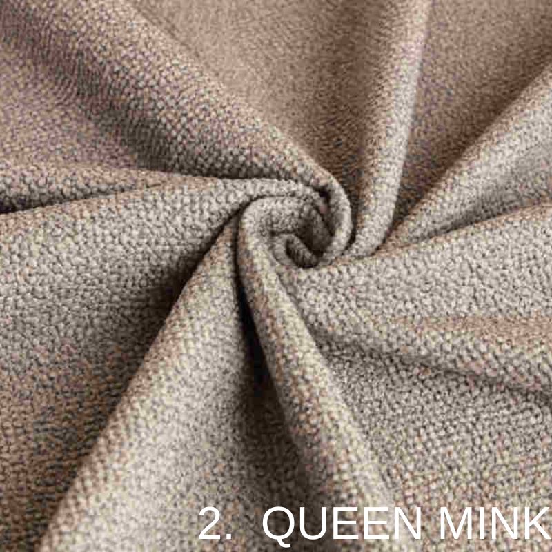 Коллекция мебельных тканей QUEEN представляет собой велюр с ультрамодной фактурой букле. Бархатная поверхность и флисовая основа (бэкинг) делают ткань супермягкой при сидении. Коллекции QUEEN не страшны царапины от случайных зацепов коготками благодаря высокой износоустойчивости, а также изделия легко чистятся от шерсти и любых других загрязнений. Коллекция предоставлена в 19 актуальных цветах.