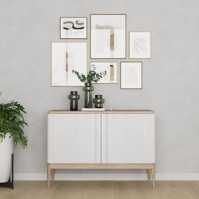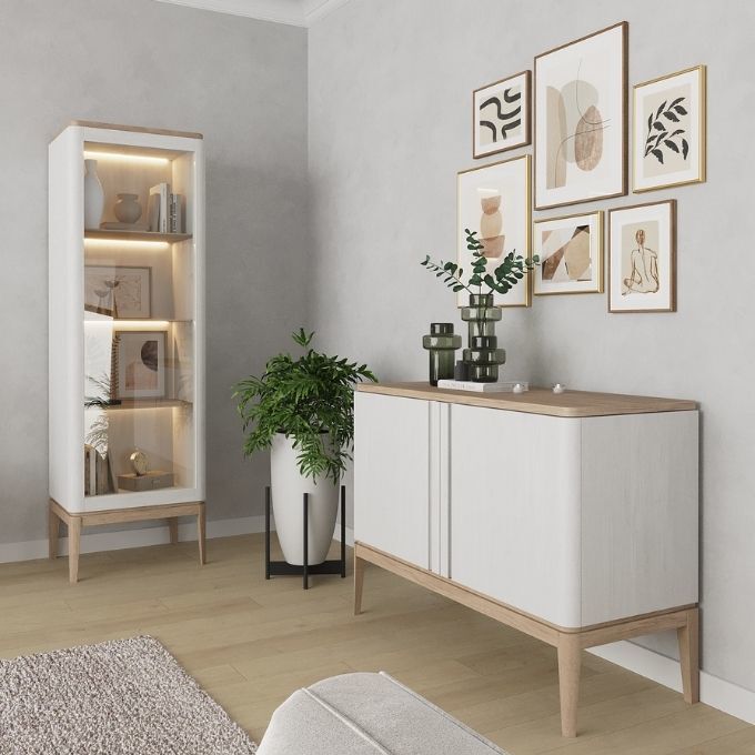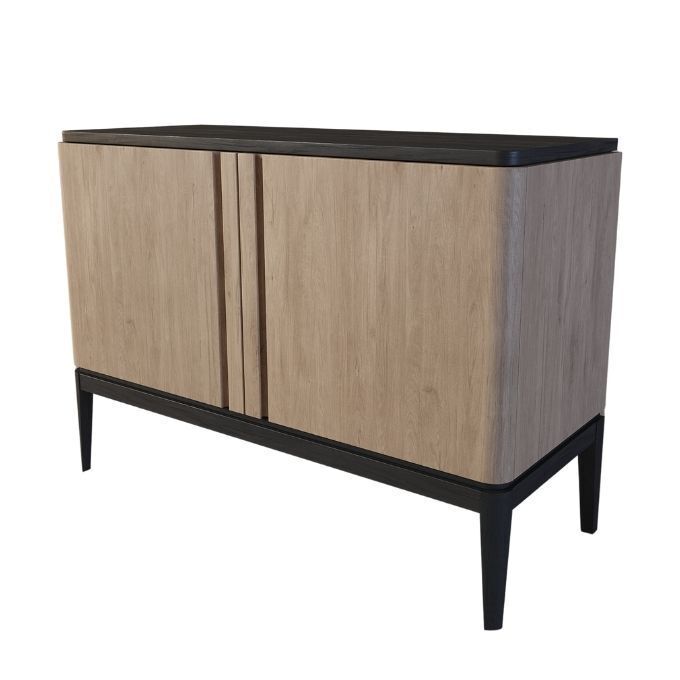 Корпус каждого изделия из коллекции Иконс, верхняя крышка и фасады изготовлены из МДФ и шпона дуба, выдвижные ящики из фанеры.