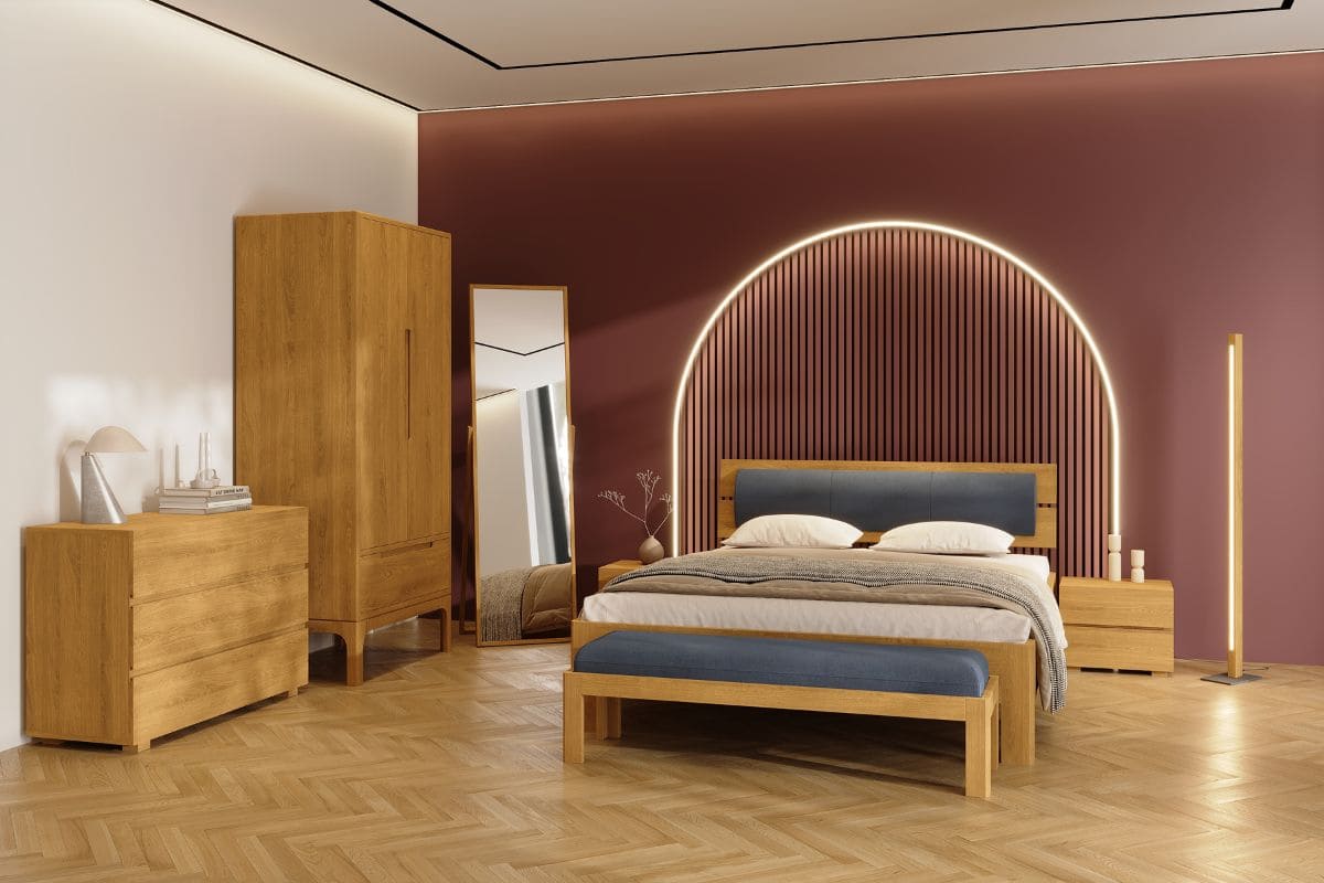 Кровать 200x200, Баямо, массив дуба срощенный, мягкое изголовье темное, табачный
