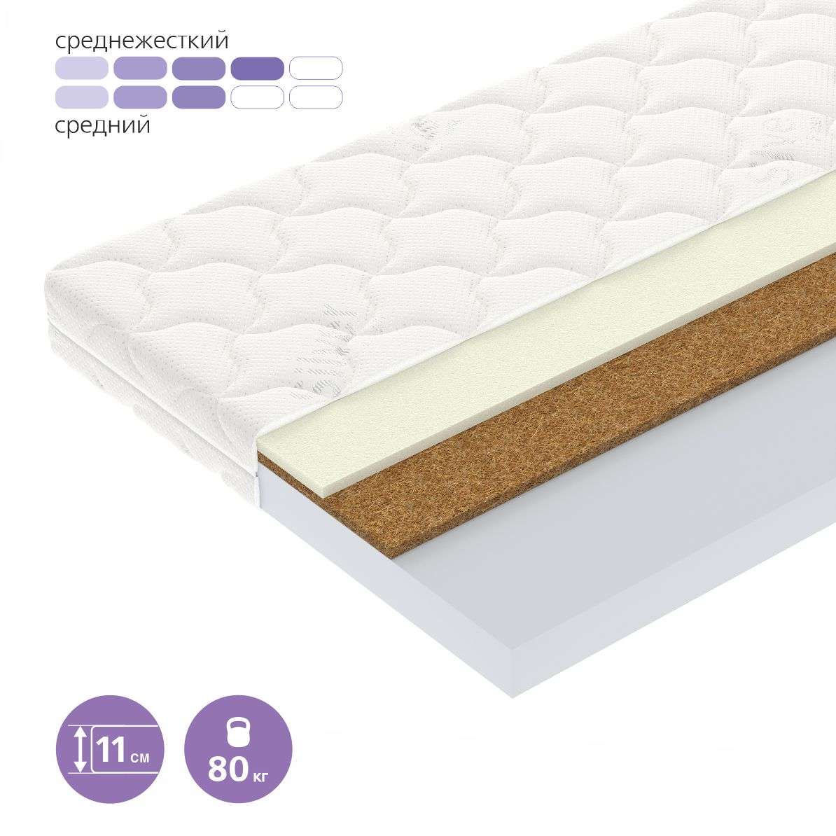 Невысокая модель на основе натуральных и искусственных материалов. Кокосовая койра придает необходимую для правильного формирования осанки жесткость, а комфортная мягкость латекса делает сон еще более глубоким и комфортным.