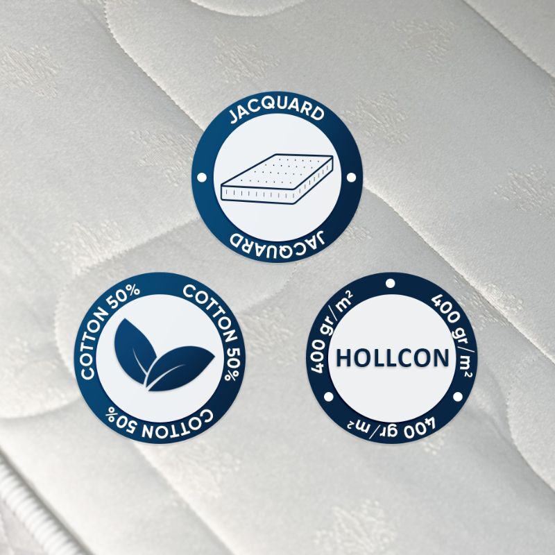 Матрас выполнен в износостойкой ткани жаккард, обеспечивающей оптимальный микроклимат во время сна.