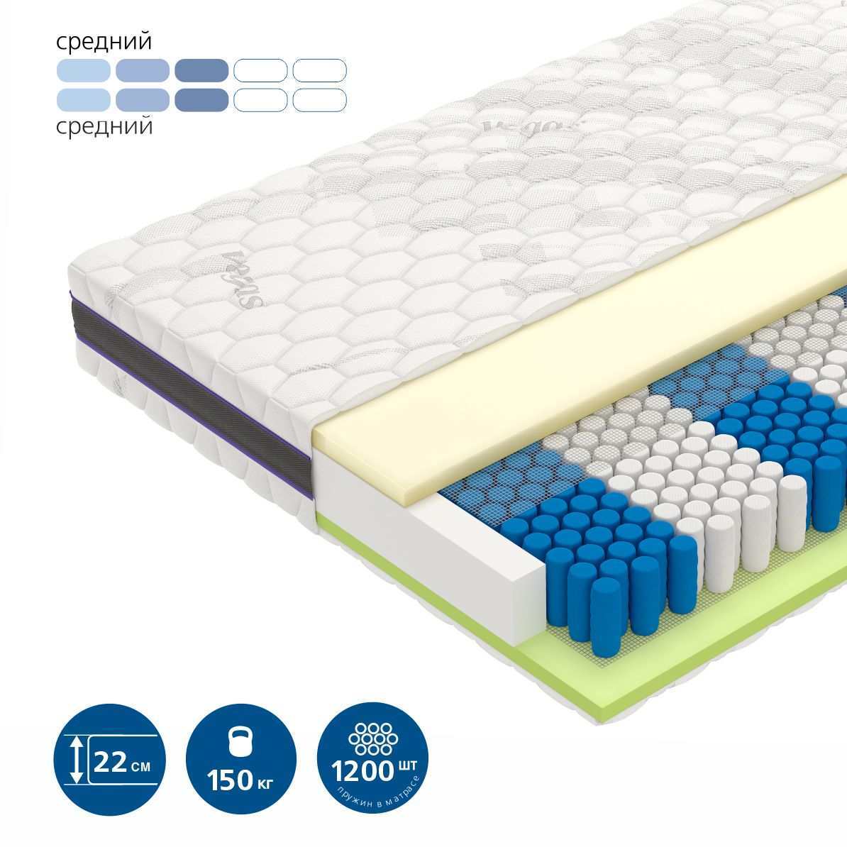 - усовершенствованный независимый пружинный блок с 7 зонами комфорта и поддержки во время сна Vernestet X1200 7-Zone. Пружины расположены в виде пчелиных сот, что увеличивает плотность их размещения, повышая ортопедический эффект и допустимую нагрузку на спальное место. Диаметр пружины 60 мм. Высота пружинного блока 140 мм.
