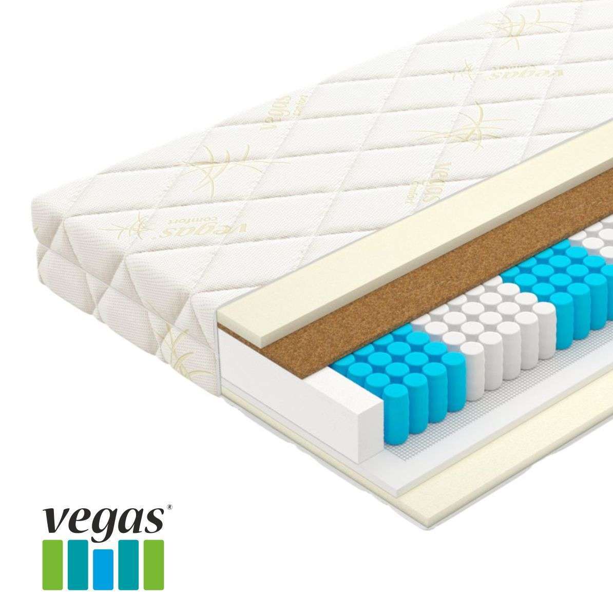 Матрас Vegas Soft – двусторонняя модель матраса: одна сторона средней жесткости, а вторая – более мягкая. Комфорт и деликатную поддержку тела спящего обеспечивает пена с эффектом памяти и невесомости MemoryFoam, дополненная с одной стороны кокосовой койрой, а с другой – дышащей и упругой пеной Vegaflex. 7-зональный пружинный блок равномерно распределяет нагрузку, благодаря чему позвоночник принимает правильное положение во сне.