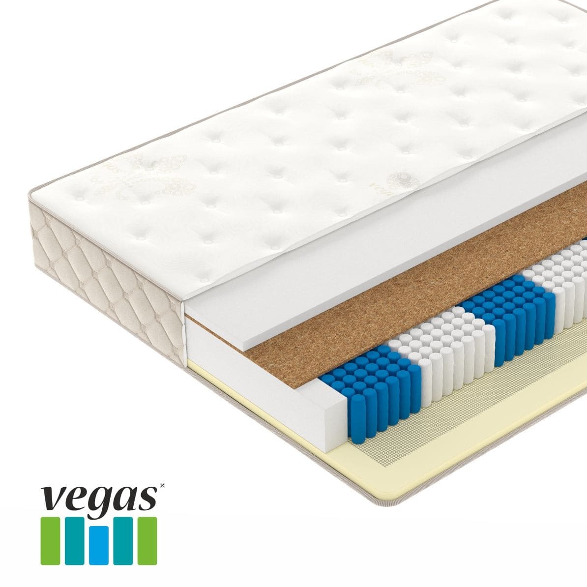 - Vegaflex - эластичный пористый материал нового поколения, образованный большим количеством мелких однородных ячеек. Одновременно мягкий и упругий, он отлично вентилируется и быстро восстанавливает форму.