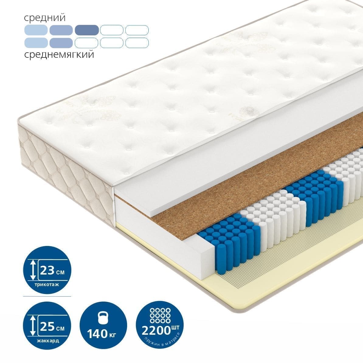- Premium Jacquard - чехол из эксклюзивной ткани Premium Jacquard имеет роскошный внешний вид благодаря плотному жаккардовому плетению. В составе ткани сочетаются дорогие волокна натурального шелка и кашемира. Обладает свойством отличной терморегуляции и обеспечивает превосходные ощущения в любое время года.