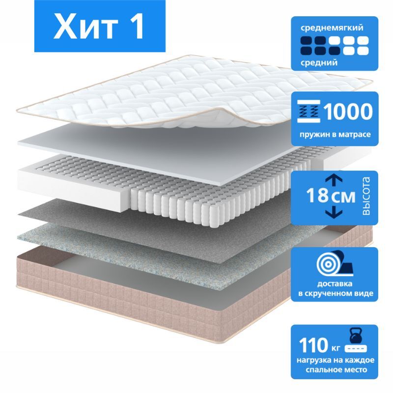 Модель для тех, кто ищет оптимальное соотношение цены и качества. Распределение нагрузки по всей площади матраса обеспечивает ортопедический эффект. Различная жесткость сторон дает возможность смены ощущений.