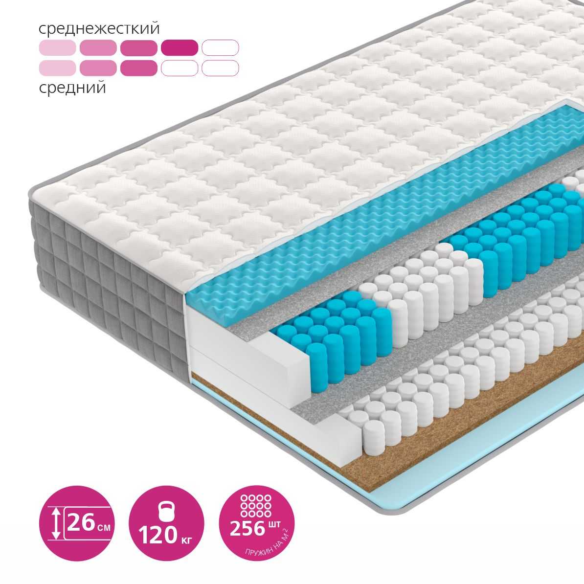 Vegas Special S6 – модель матраса увеличенной высоты по доступной цене. Два независимых пружинных блока и 5 зон жесткости обеспечивают уверенный ортопедический эффект. Сторона средней жесткости дополнена микромассажным эффектом, более жесткая сторона усилена кокосовой койрой. Матрас одет в цельный трикотажный чехол с акцентным бурлетом из плотной мебельной ткани.